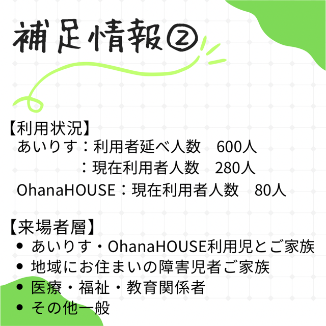 あいりす×Ohanaフェスティバルであれば多数の看護師スタッフがいることや当日福祉タクシーでの送迎が可能となるため、そういったお子様ご家族様も多く参加されます。