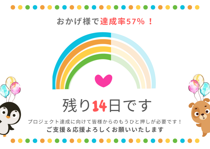 プロジェクト達成させるために、もうひと押し皆様のお力添えが必要です。