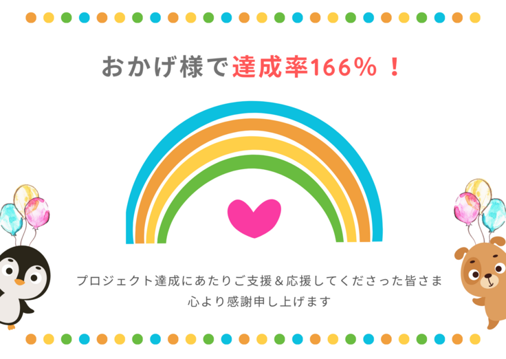 おかげ様で達成率166%、支援金額3,327,000円、85名様からのご支援をいただきました。