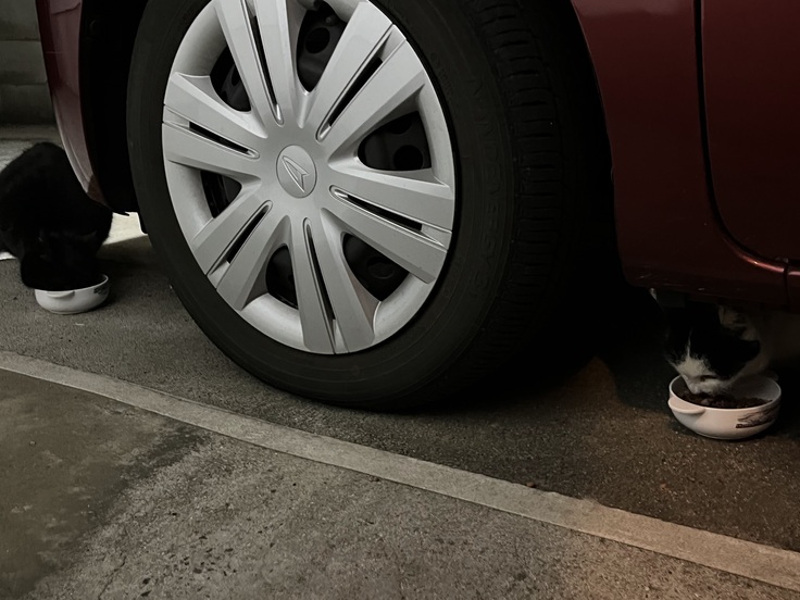 仕事から急いで帰宅しましたが、餌場に集まっているTNRM組の子たちは、寒さに震えながら、頑張って私の帰りを待っていました。こんな日は、いつもよりも更に大急ぎで、大至急!ご飯を用意して配ります。