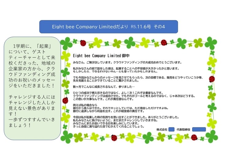 11月6日 ゲストティーチャーから励ましのお手紙が!