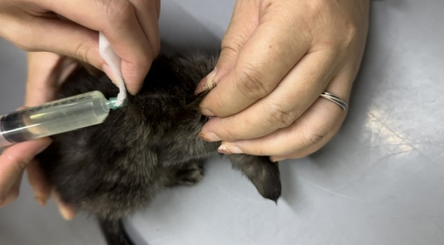 滋賀県で保護した成猫、子猫はみんな猫風邪を引いており、埼玉県で保護した子猫は真菌疑いで動物病院へ