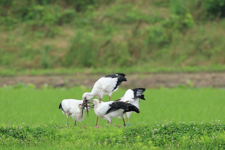 カエル、ドジョウ、オタマジャクシ、ミミズ、大きな蛇なども食べている様子がみられ、コウノトリが生き抜いていくためは、好物である餌がたくさんいる場所がなにより必要であることを実感しました。