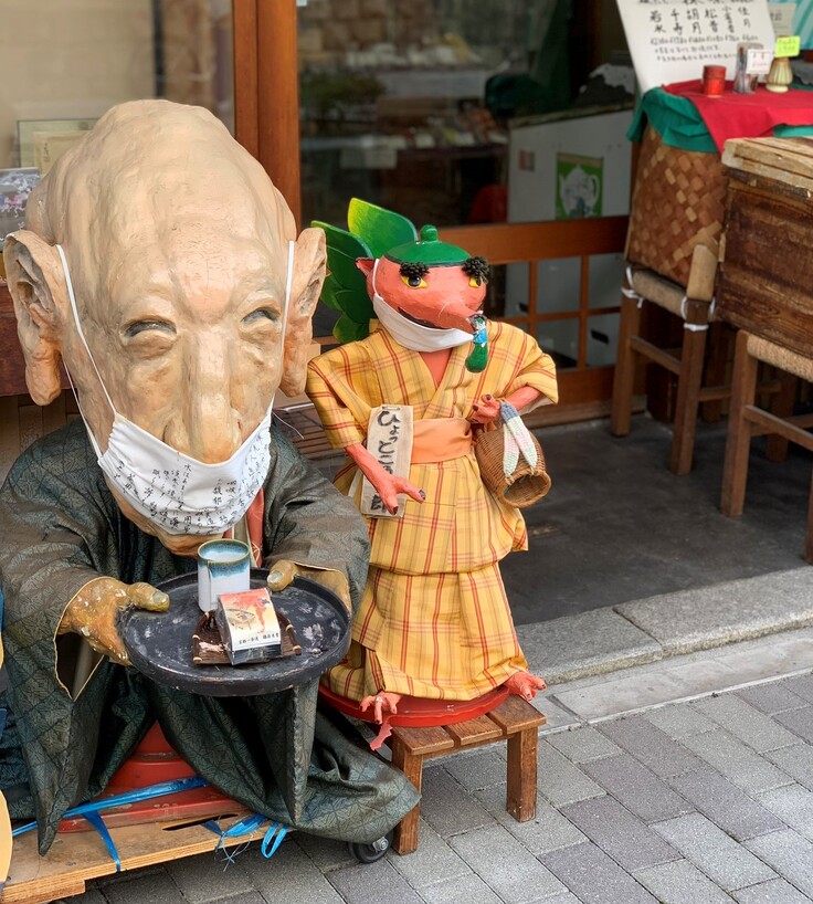 大将軍商店街は、京都市上京区の西大路通から中立売通までの一条通沿いにあり、およそ400mの商店街です。また、大将軍商店街がある一条通は、平安京の北の端に位置する通りでもあります。つまり、一条通の南が都の内側「人の住む領域」、一条通の北側は都の外側「人以外の何かがいる領域」であり、一条通は人が人でないものと出会う場所と考えられていたようです。その根拠に今昔物語や宇治拾遺物語では、妖怪たちの大行列「百鬼夜行」に遭遇してしまうお話がたくさんあります。