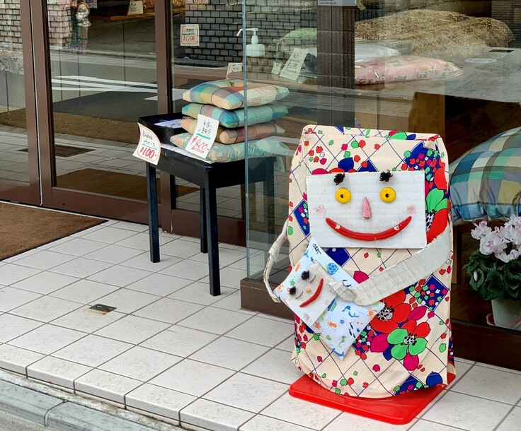 店舗の前には、様々な手作りの妖怪が置かれており、山田フライ専門店では、ご当地料理「妖怪コロッケ」が販売されています。