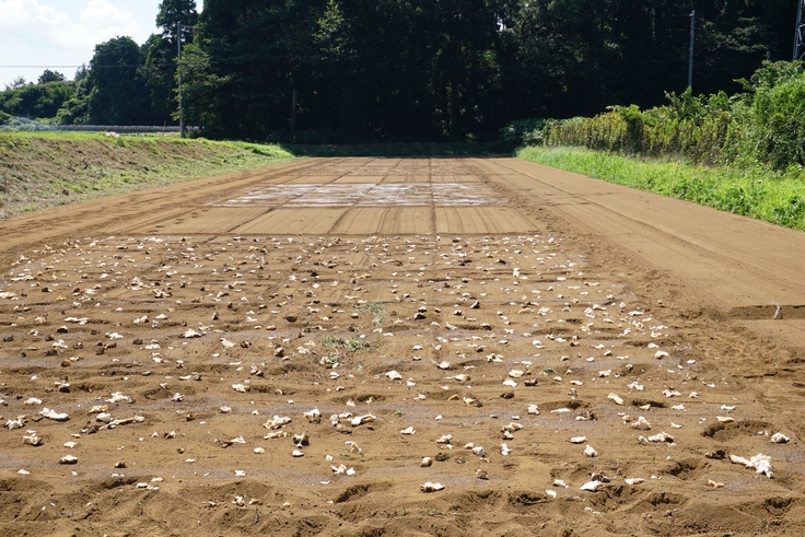ある程度の大きさになるものの、このサイズでは畑に鋤き込む作業のときにケガなどをする恐れもあるので、さらに粉々に。この作業が一番しんどかったです、、、。
