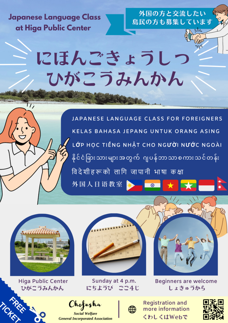 今年度は比嘉地区に居住の島民・技能実習生の方々を対象とした小規模な日本語教室を開く予定です(月に2回、第2・第4日曜を考えています)。