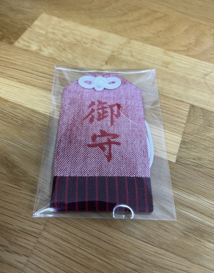 こちらのお守りは、男子7個、女子5個のたすき生地端材を活用し、ひとつひとつ手作りで、そしてひとつひとつ手書きで【必勝】の文字を書き込んでいただいております。
