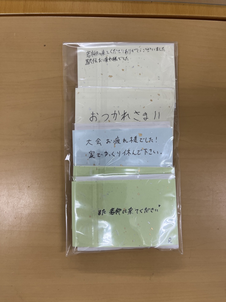 いよいよ、その本番を迎え、大会前日の開会式前に迫桜高校生徒様から大会へ、そして開会式の中で、大会の本部長様から各チームへ配布になりました。