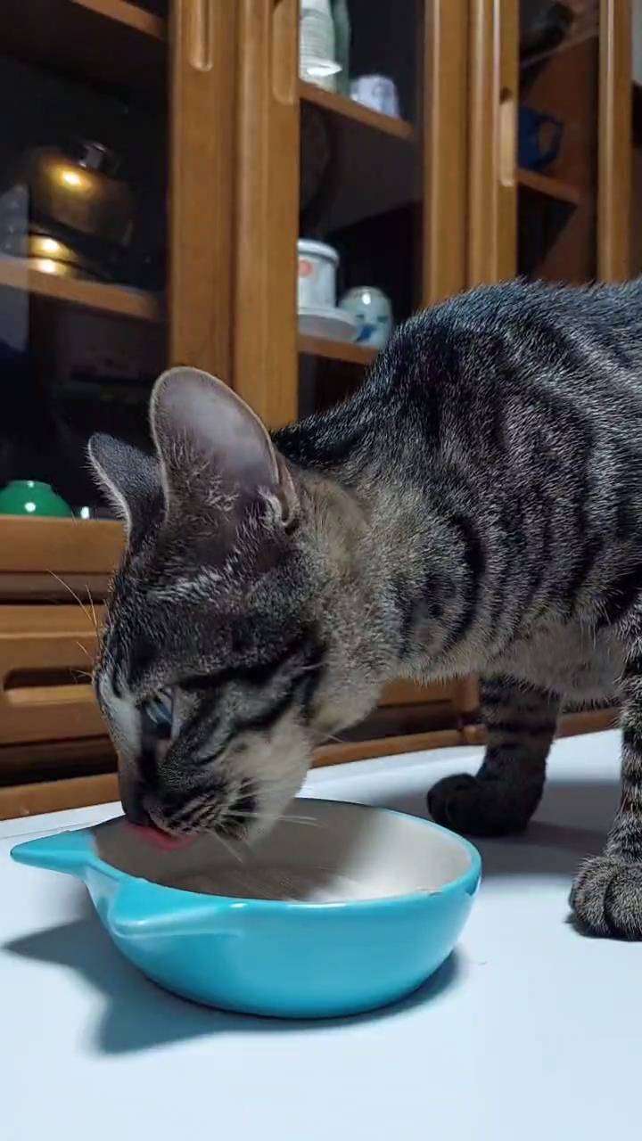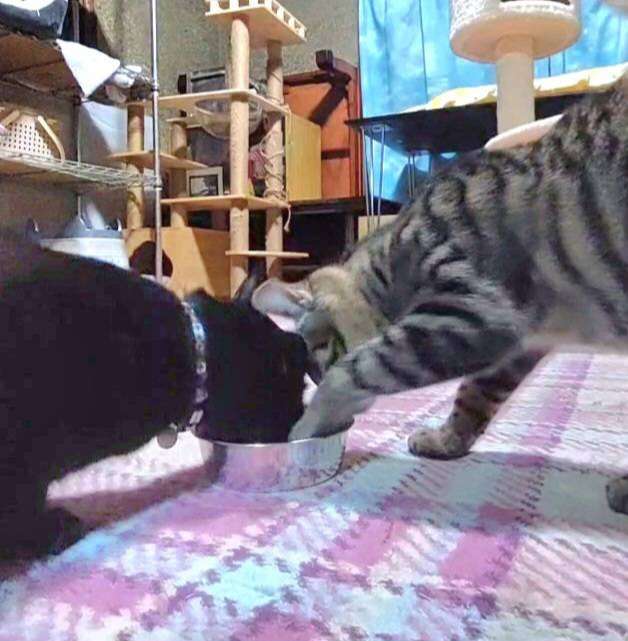 他の猫ちゃんのご飯を奪いに行く食べっぷりです。
