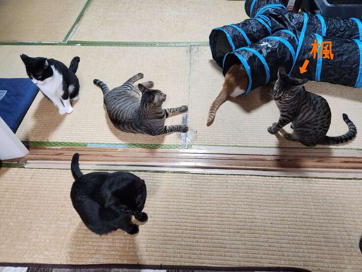 お兄ちゃんお姉ちゃん猫と毎日トンネルで楽しく遊んでいます。