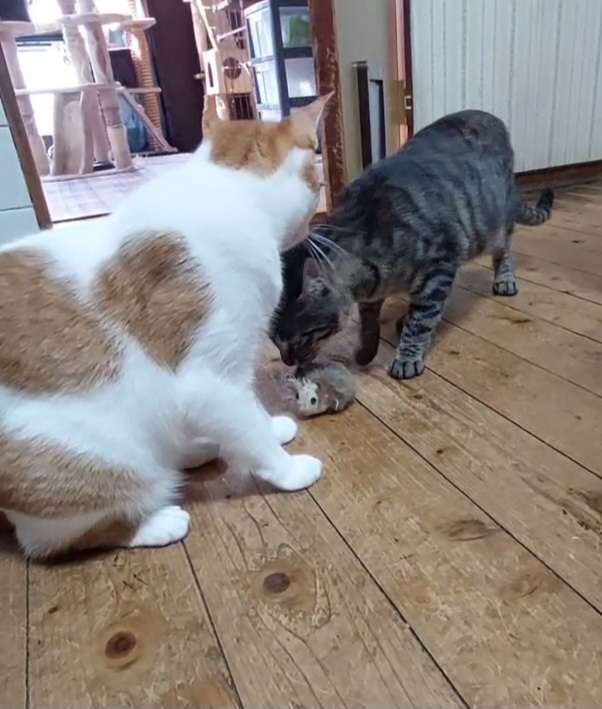 破れた個所を縫って補修し、今日もそのねずみのおもちゃで