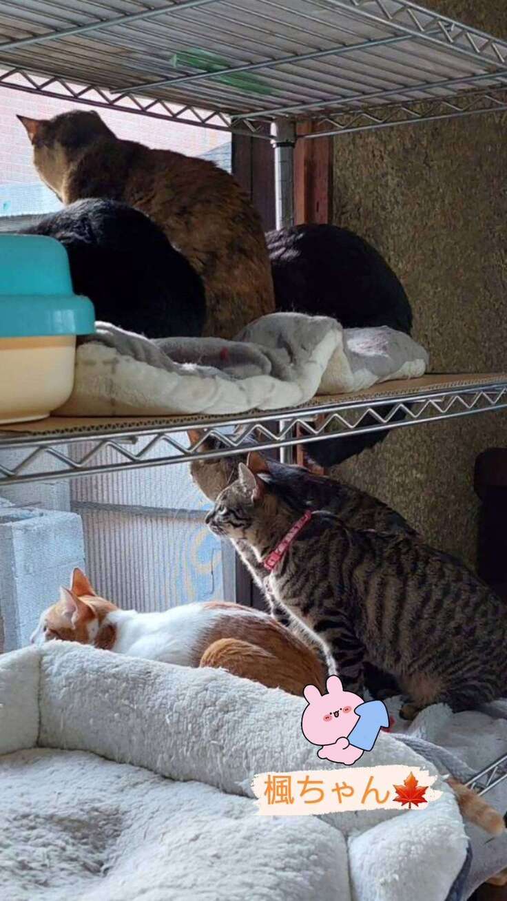 最近は気候がいいからか、寝ていることが多い楓とお兄ちゃんお姉ちゃん猫達💤