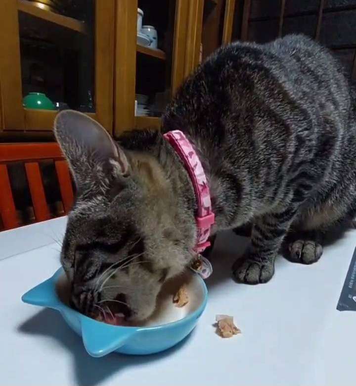 自分のご飯を食べた後も、他の猫ちゃんの残りご飯がないかと