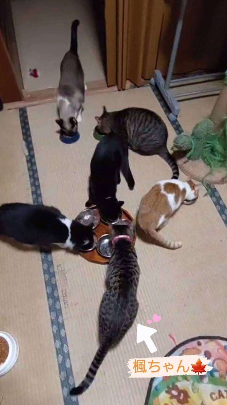 今日の楓も、他の猫ちゃん達と一緒に食べてから自分のご飯を