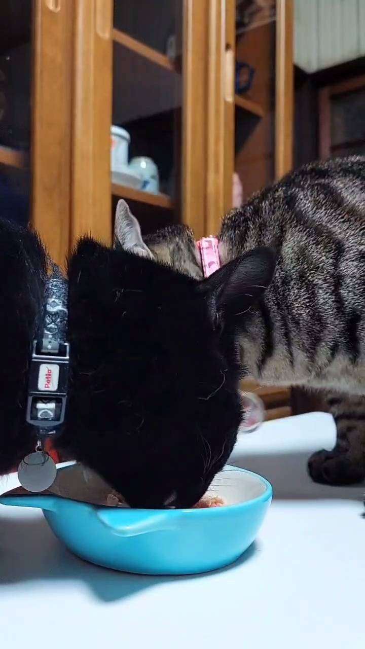 最近は、お兄ちゃん猫やお姉ちゃん猫が楓のご飯に乱入することがよく見られるようになり、