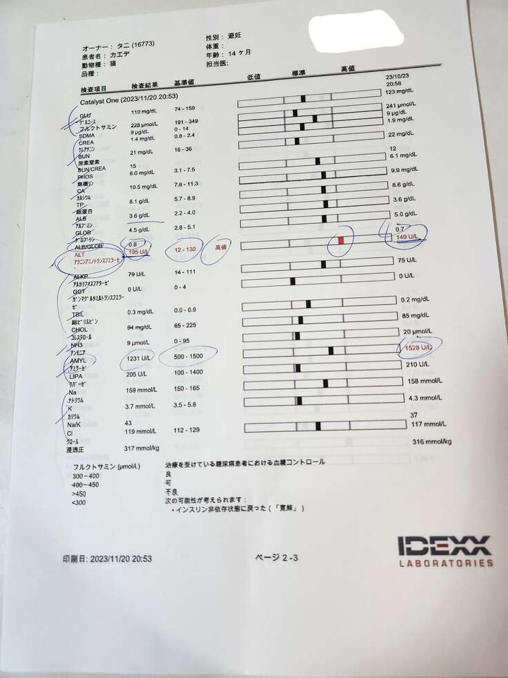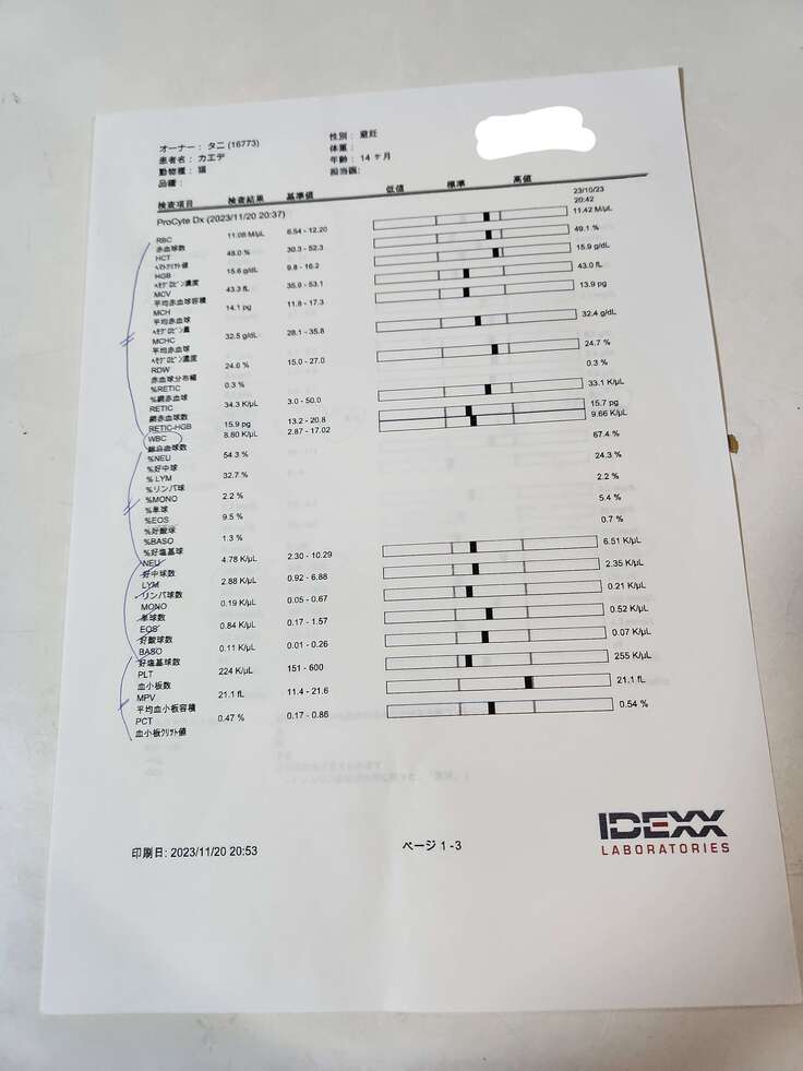 血液検査の結果ですが、直接FIPに関わる大事な項目は問題ないとのことでした。
