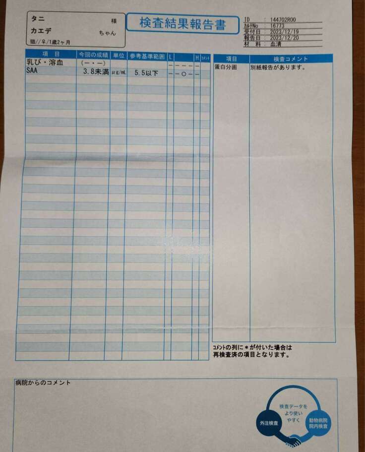 昨日、検査結果が届き、お電話で先生の方から説明があり「寛解」ですね!と