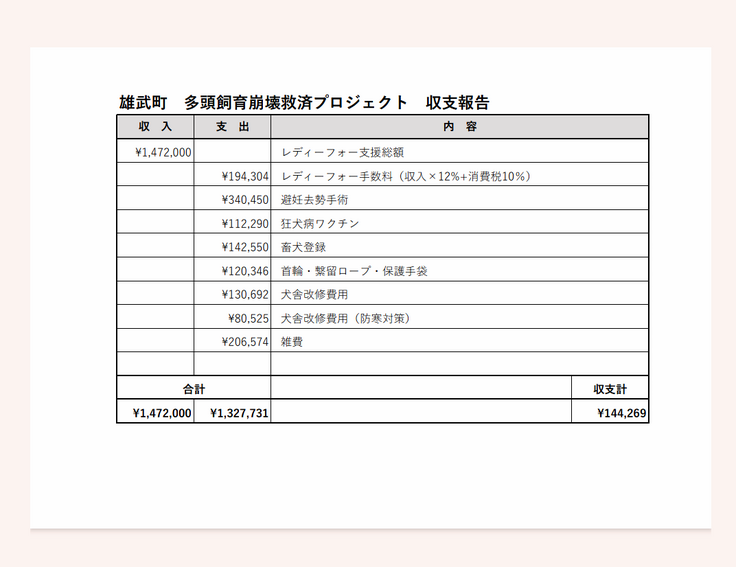 第一回目の手術費及び、畜犬登録・狂犬病ワクチンに使用させて頂きました。