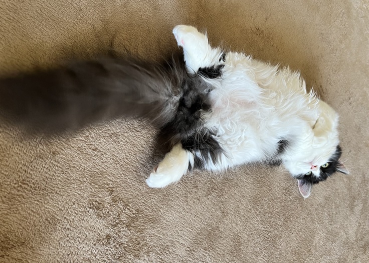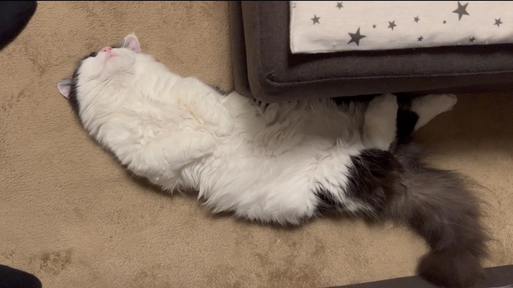 猫さんとの生活が初めてで、緊張や心配でいっぱいでしたが、粗相も破壊もせずマイペースに過ごすテオくんがそれを吹き飛ばしてくれました。