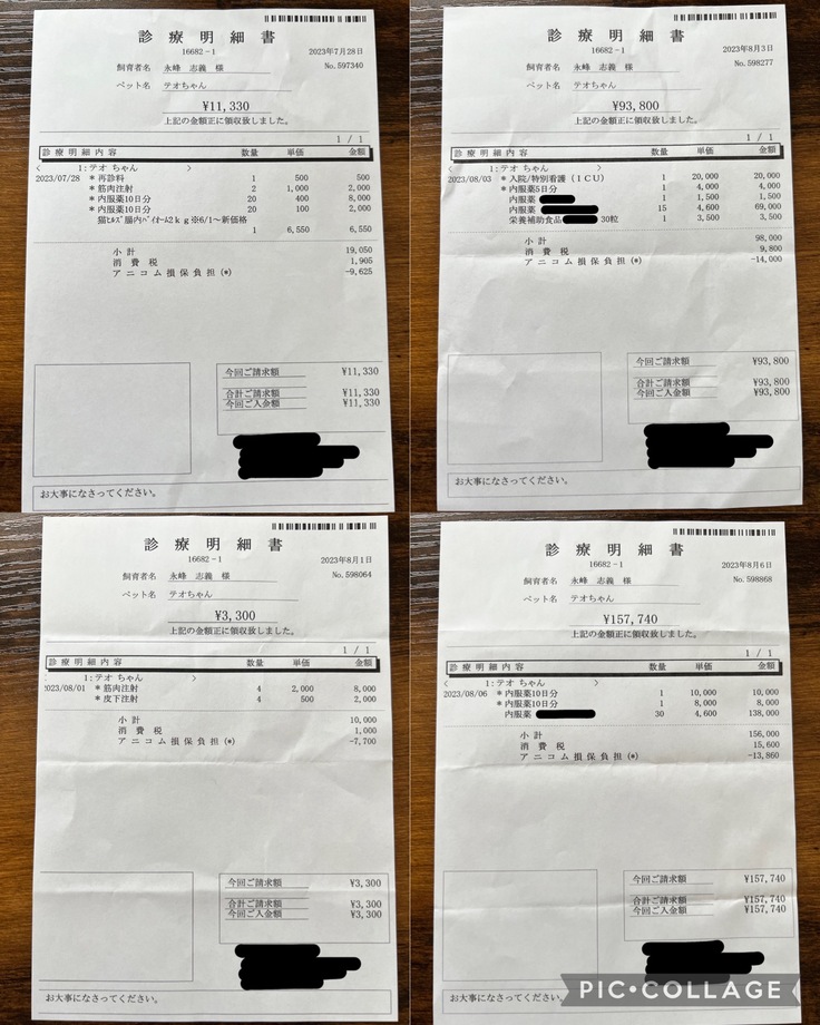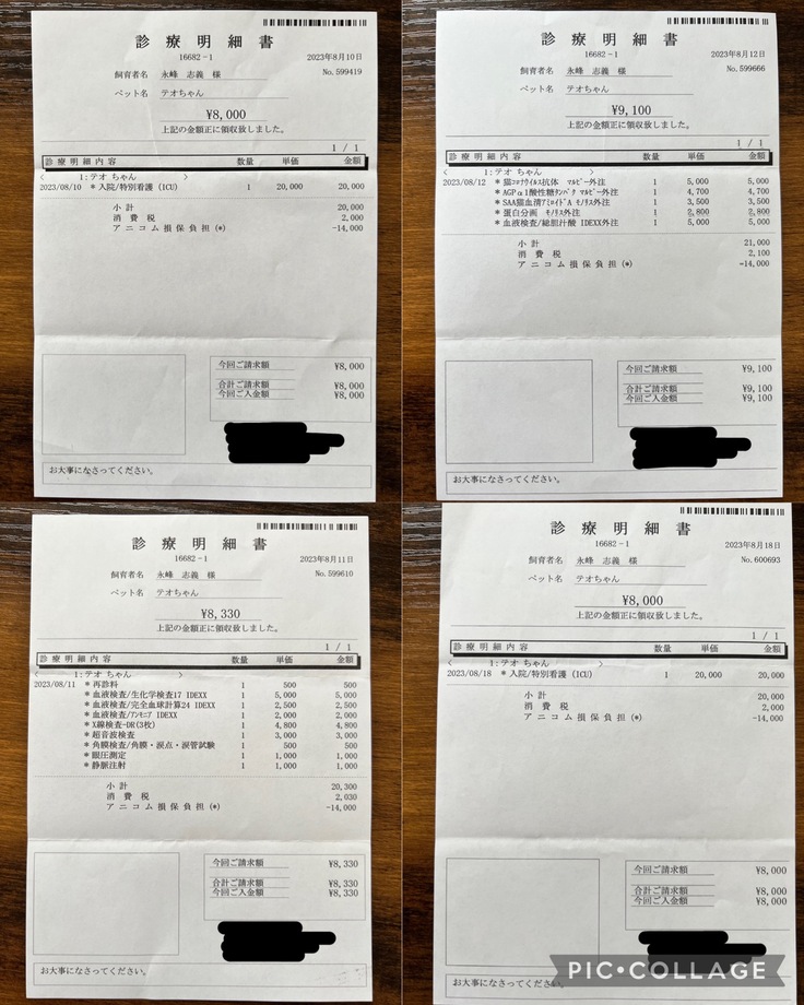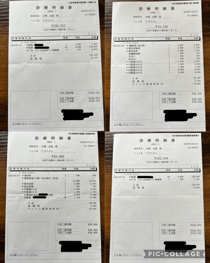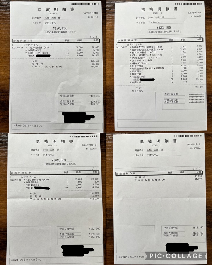 加えて隔週ごとに血液検査・レントゲン・エコー検査等の検査代がかかってきます。