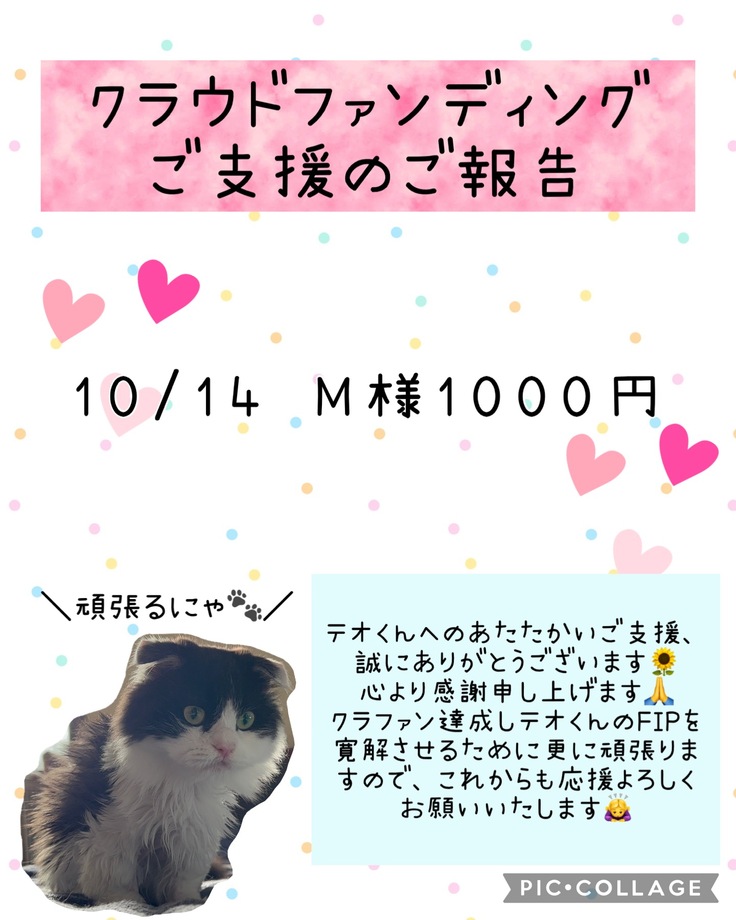 猫伝染性腹膜炎を患ったポンちゃんの明日をつないで頂けないでしょうか