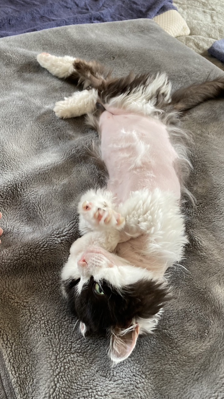 1回目の84日間のお薬の副作用と換毛期で、お顔からお腹にかけて広範囲に毛が抜けてしまいました。