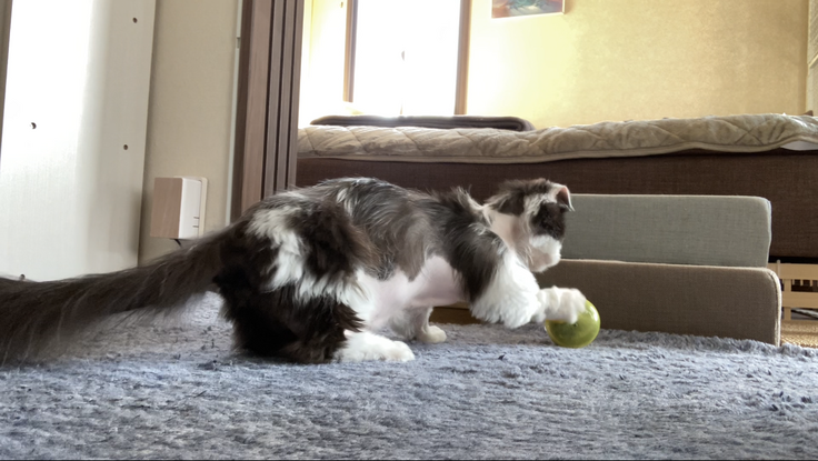 ヒモが切れてしまったネズミさんをカプセルに入れたボール遊びもとても上手でした。