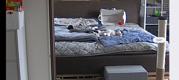 ケーキを買いにテオくんに1時間ほど留守番を頼みましたところ、とてもお利口さんにベッドで寛いでいたり窓の外を見に行ったりマイペースに過ごしてくれていました(見守りカメラで様子を観察)