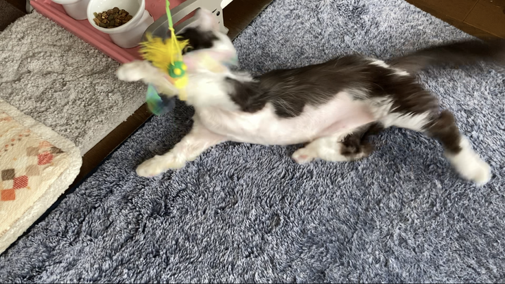テオくんも神経症状でよろめいたりしながらも、狩りの如く飛びかかりを見せてくれたり、鋭い猫パンチや連打を見せてくれたり、いっぱい付き合ってくれました。
