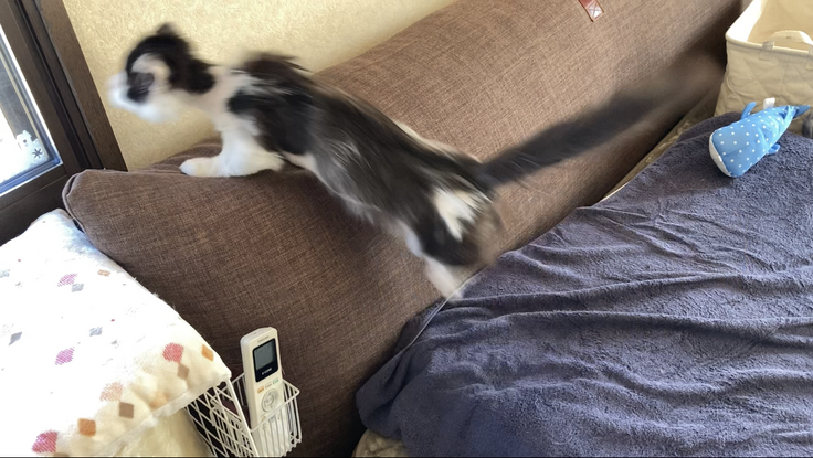 テオくんの動きが激しすぎて残像になっているのですが、お分かりいただけますでしょうか。
