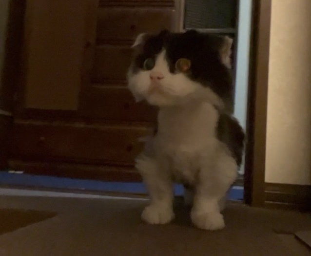 今日は激しく遊ばず、お部屋と廊下のパトロールをいっぱいしたテオくん。