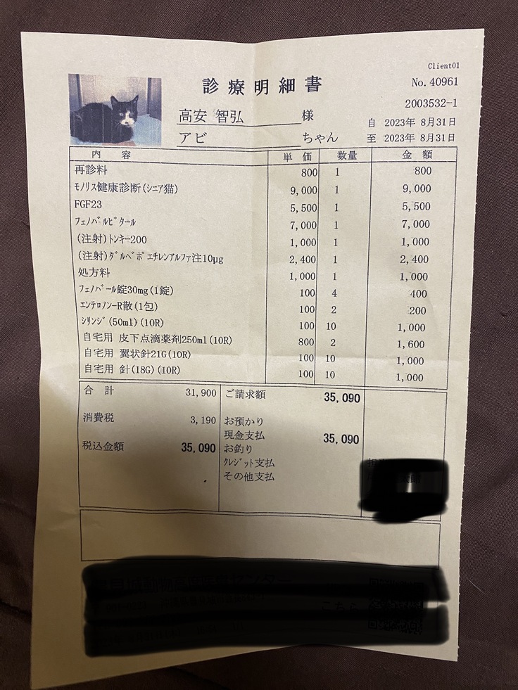 夜間に駆け込んだ際の費用と入院費合わせ、概算ですがトータル80万は超えています。