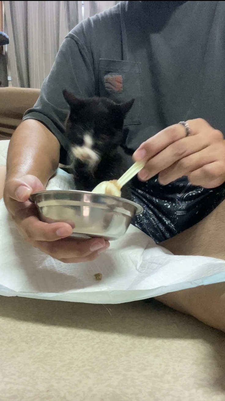 あとアビの食事を動画でお見せできたらわかりやすいんですが、載せれないため画像を何枚か載せてみます。伝われば良いのですが。。首振りと手が出て器をこぼしたり、手が汚れるため手は私の足で固定しています。