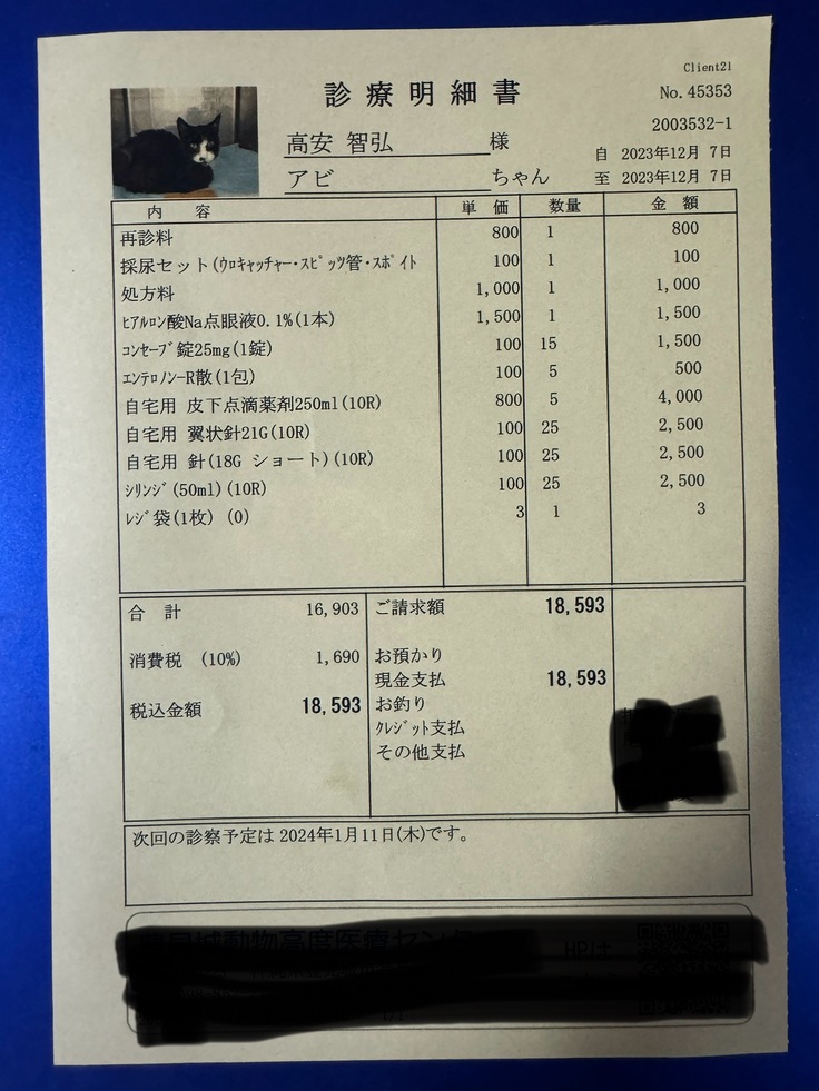 12/7にアビさんの定期受診でした。