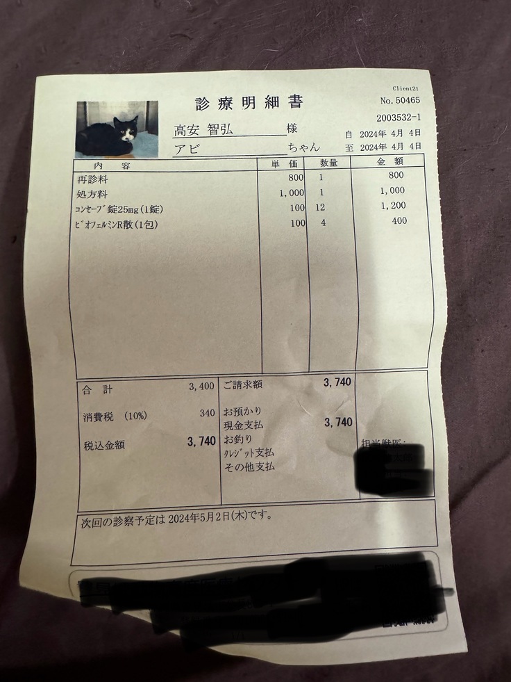 あと、血液検査の結果も良好でした。腎臓病としてはステージ2。一年前と変わらない数値でした。本当に皆様のご支援ありがとうございます。この結果が全てだと思っております。感謝致します。