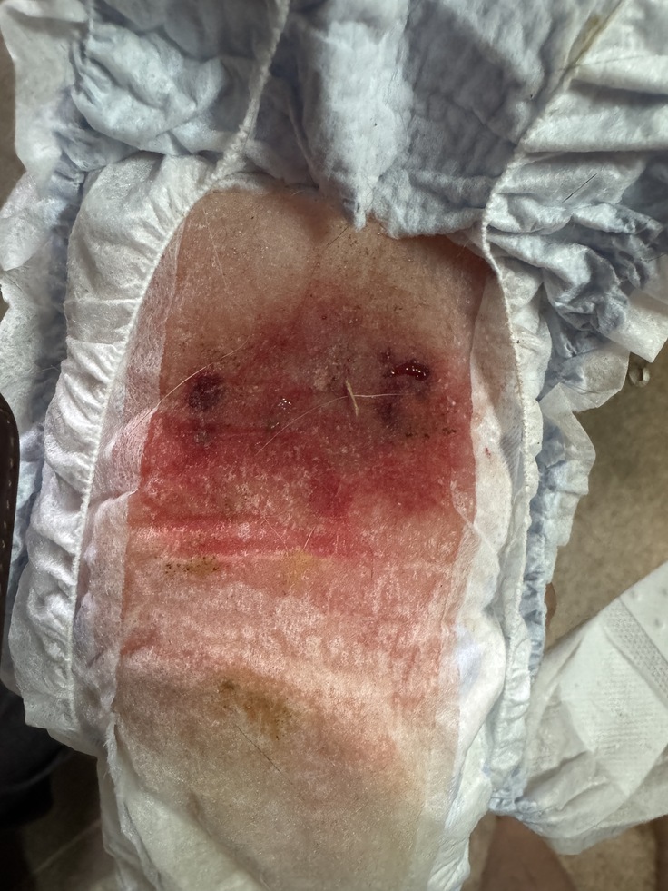 朝から多量の血尿が出ており、ご飯も半分程しか食べずという状態。