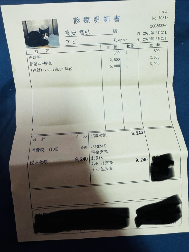 6/20ですがアビを緊急で受診いたしました。