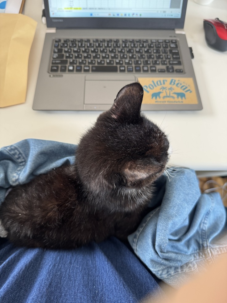 昨日は落ち着かなかったので、膝に載せて仕事してました笑
