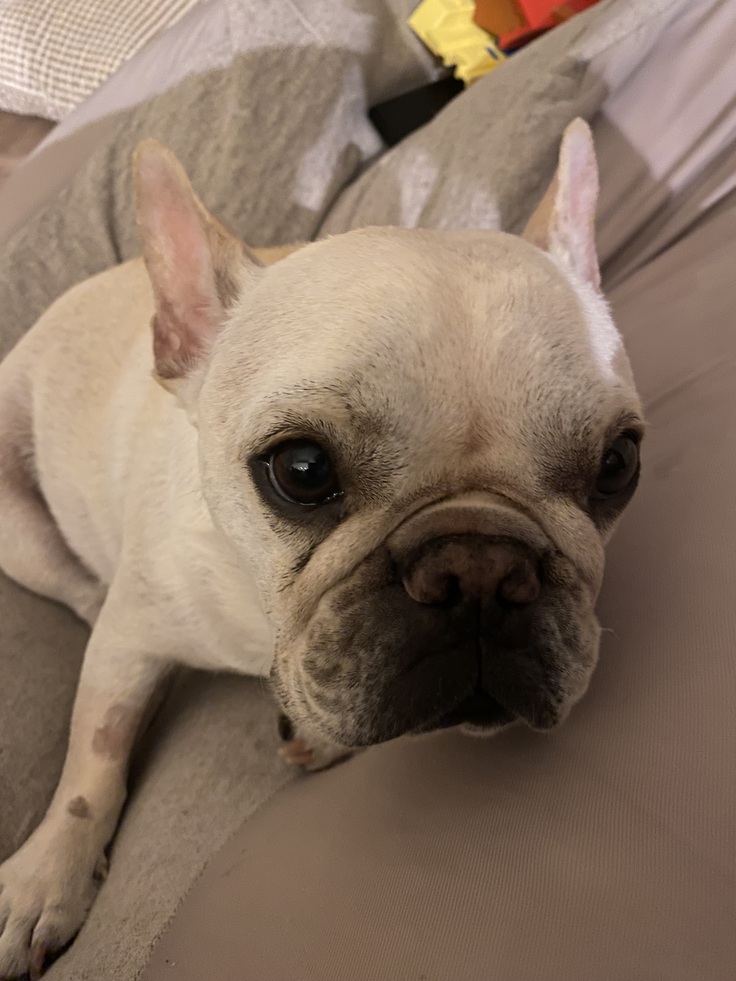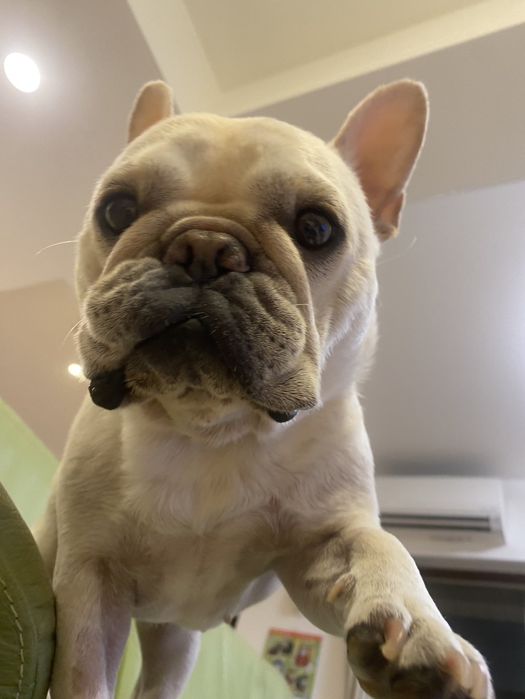 ソファに乗っているこむぎの写真を撮ろうとアングルを変えていて下から撮影したらこの後お腹に飛び乗られました😂