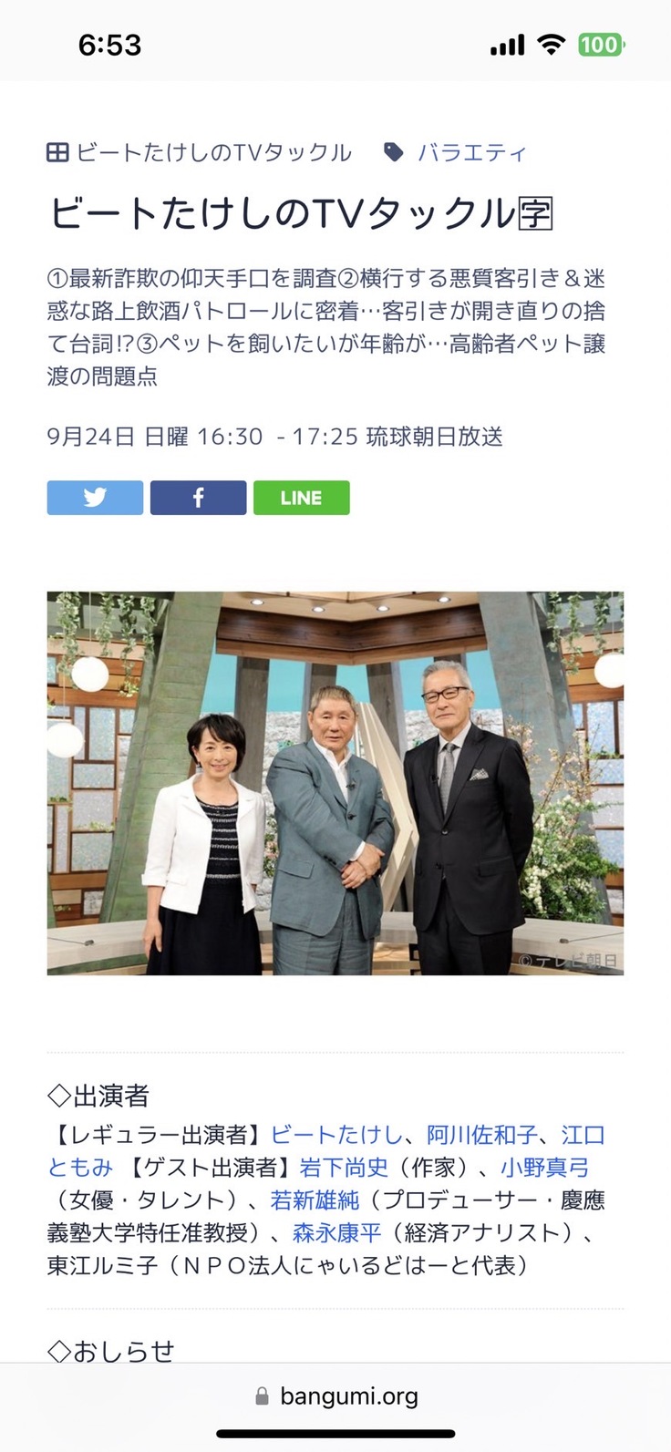 関東は日曜日のお昼12時放送で因みに沖縄は
