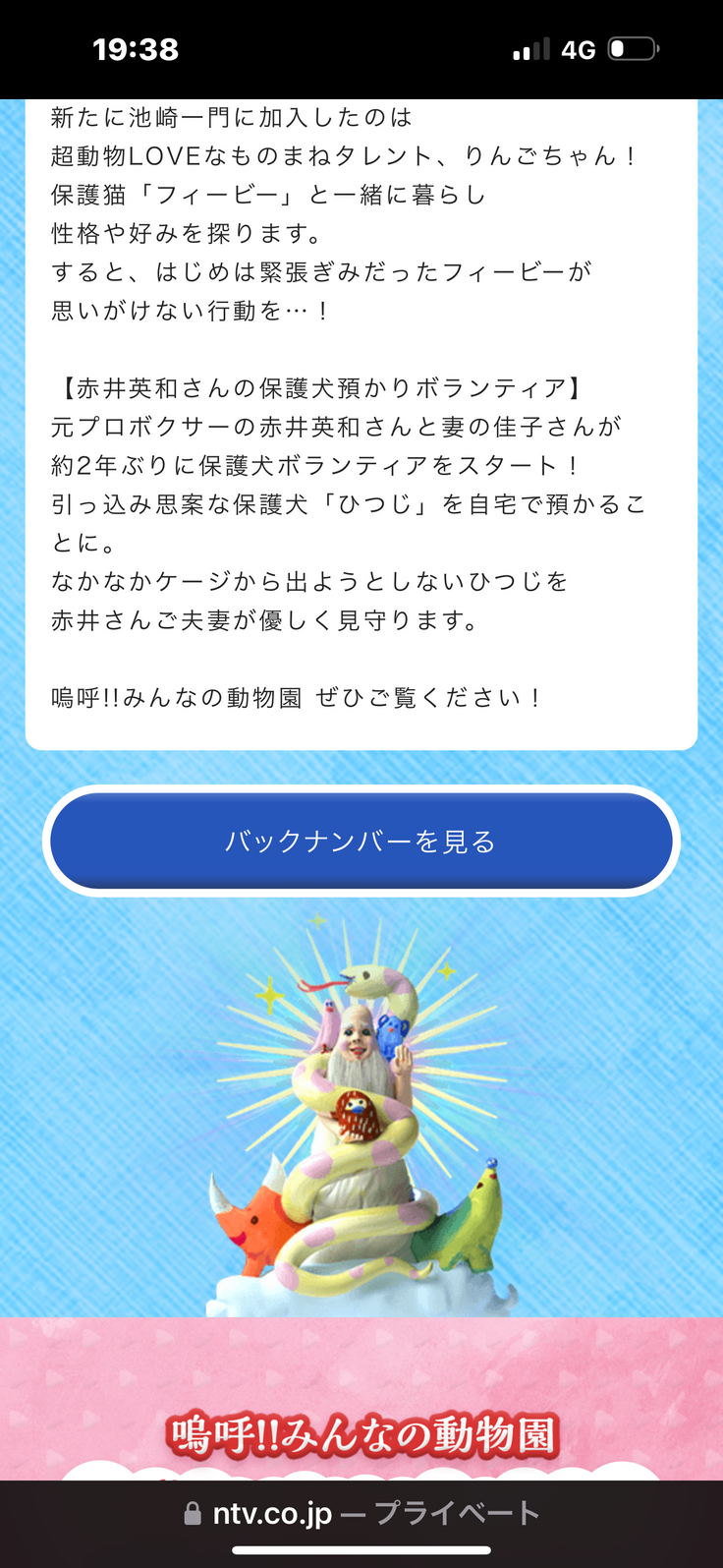 日本テレビ19時からのスペシャルで後半だと思いますが嗚呼みんなの動物園に出ます。