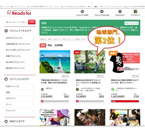 昨日一日で、皆さまの応援の力で、数あるプロジェクトの 中でここまで押し上げていただき、ウェブサイトのトップ ページに表示してもらえています。本当にありがとうござ います。