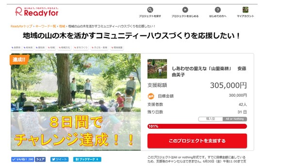 本当に劇的な展開で6日目の建て前当日までに、ページ上では95%に達し、手元に直接届けていただいた額も合わせると30万円を突破していました。当初は、まさか予想だにしていなかった奇跡のような展開で、建て前当日に30万円のご祝儀というカタチで必要な資金を届けることができました。