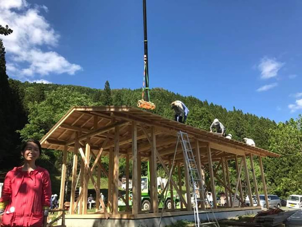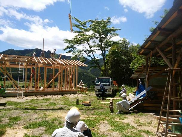 集落の高台に、緑の山々に映えて、赤い屋根のコミュニティハウスができていきます。これから、ますます今回応援してくださった皆さんと一緒に力を合わせて、楽しく伸び伸びと交流できる地域の拠点に!!