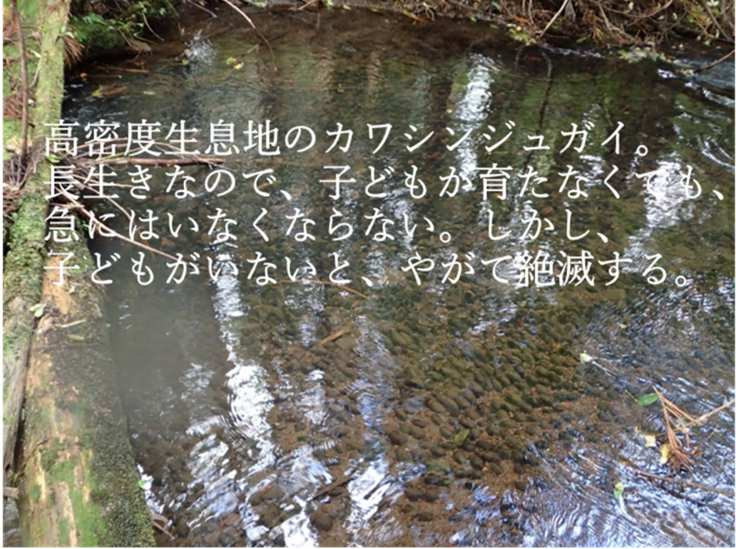 寄生するヤマメがいなければ、「カワシンジュガイ」も絶滅の危機に瀕します。「カワシンジュガイ」が絶滅すると川の生態系も大きく変わることが考えられます。