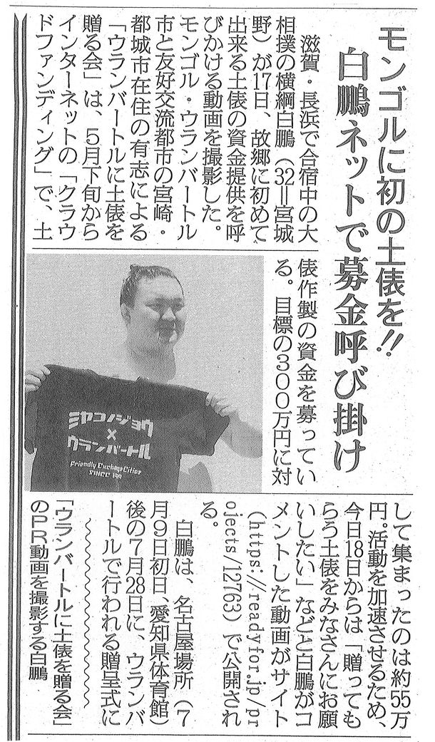 その様子が6月18日付けの日刊スポーツに掲載されました。