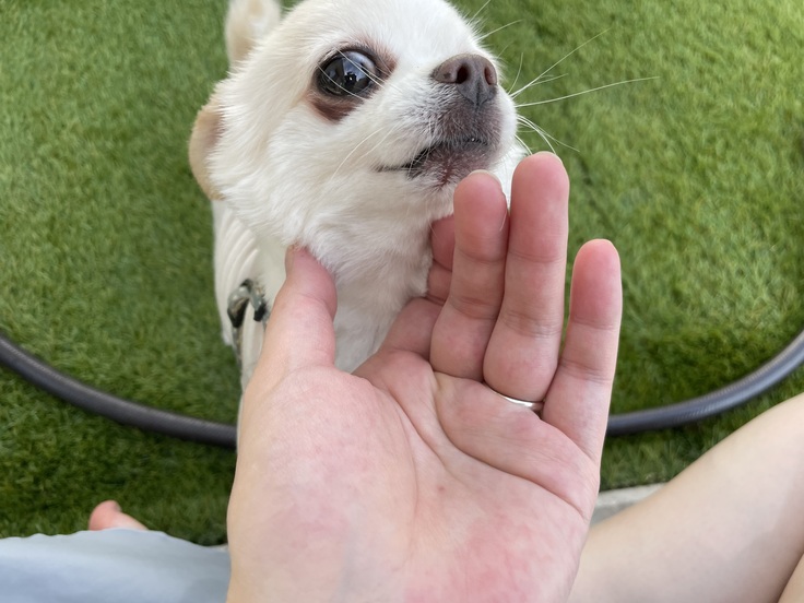 他のワンちゃんが苦手で散歩やドッグランでもマイペースにおひとりライフを貫きながらも、人が大好きで他の飼い主さん達に愛想を振る舞いて撫でて貰うのが得意な人大好きワンコです。
