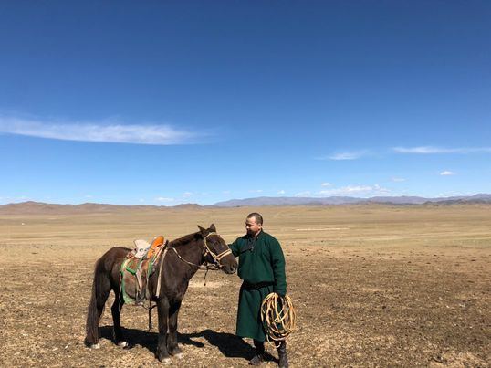 彼は田舎で家畜を放牧しながら暮らしています。モンゴルは人口300万人、