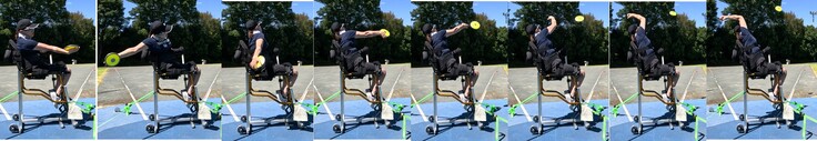 (競技を行うためには投擲台や麻痺した手をサポートする特殊な用具を使います)